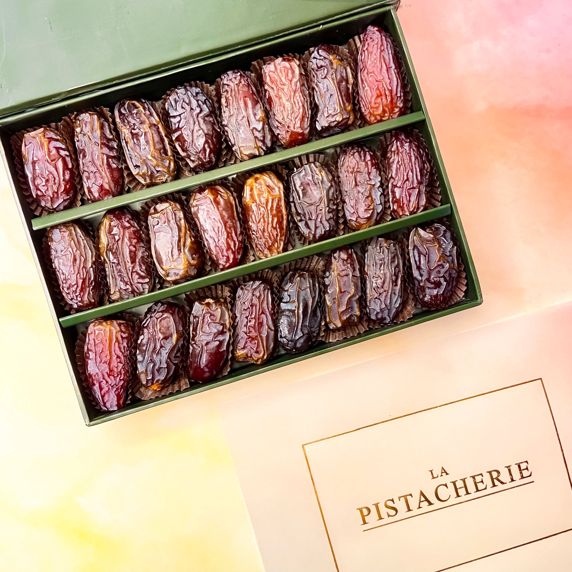 Dates - Often referred to as the “King of Dates”, Medjool Dates are a prized fruit known for their large size and soft texture. Savour the luscious and exotic flavour of Premium Medjool Dates stuffed with candied orange, roasted almonds, roasted hazelnuts & cranberries, caramelized pecans & rose petals, raw honey & elaichi infused pistachios and walnuts, taking your tastebuds on a sophisticated journey of the senses.