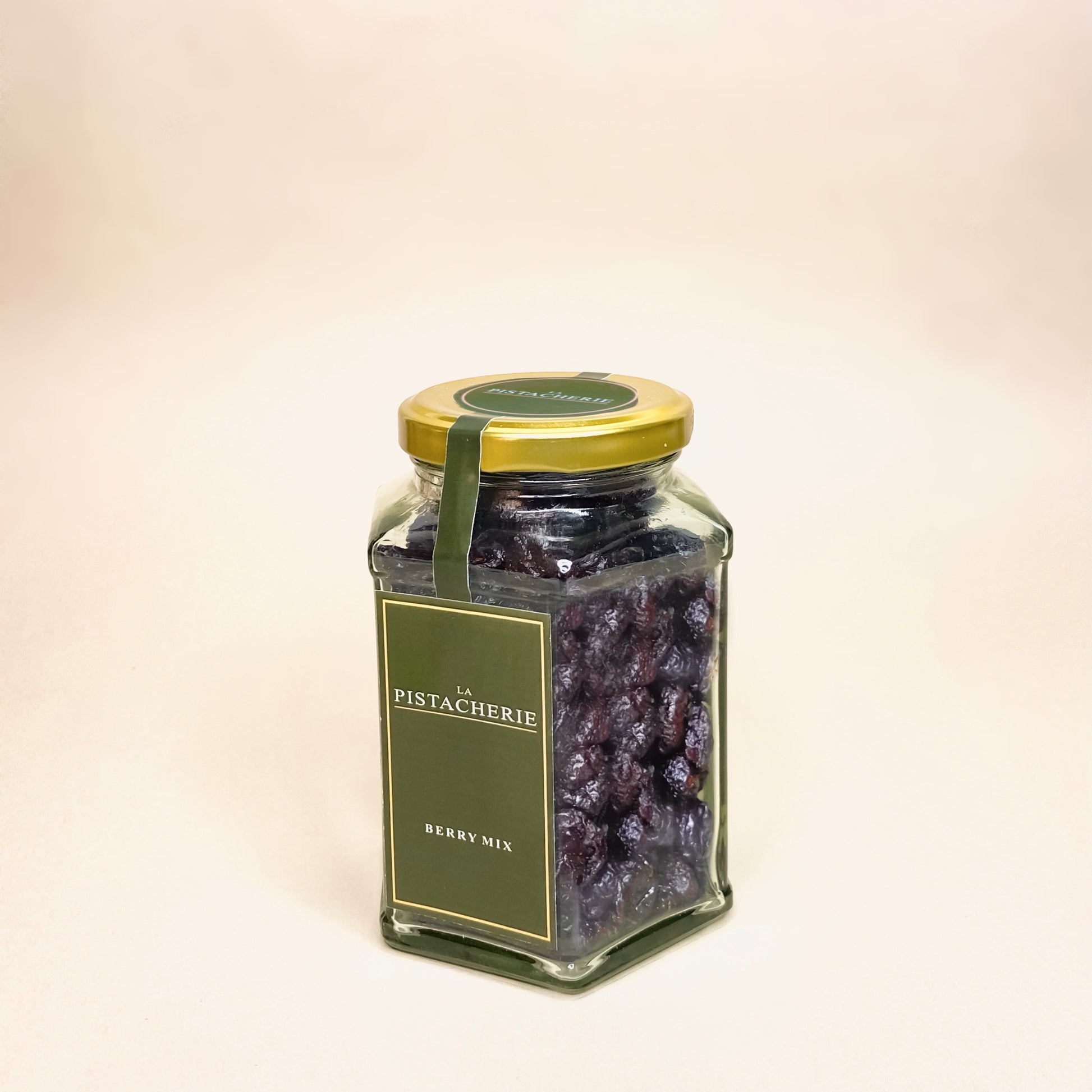 Jar contains Dried Whole Cranberries and Dried Blueberries.