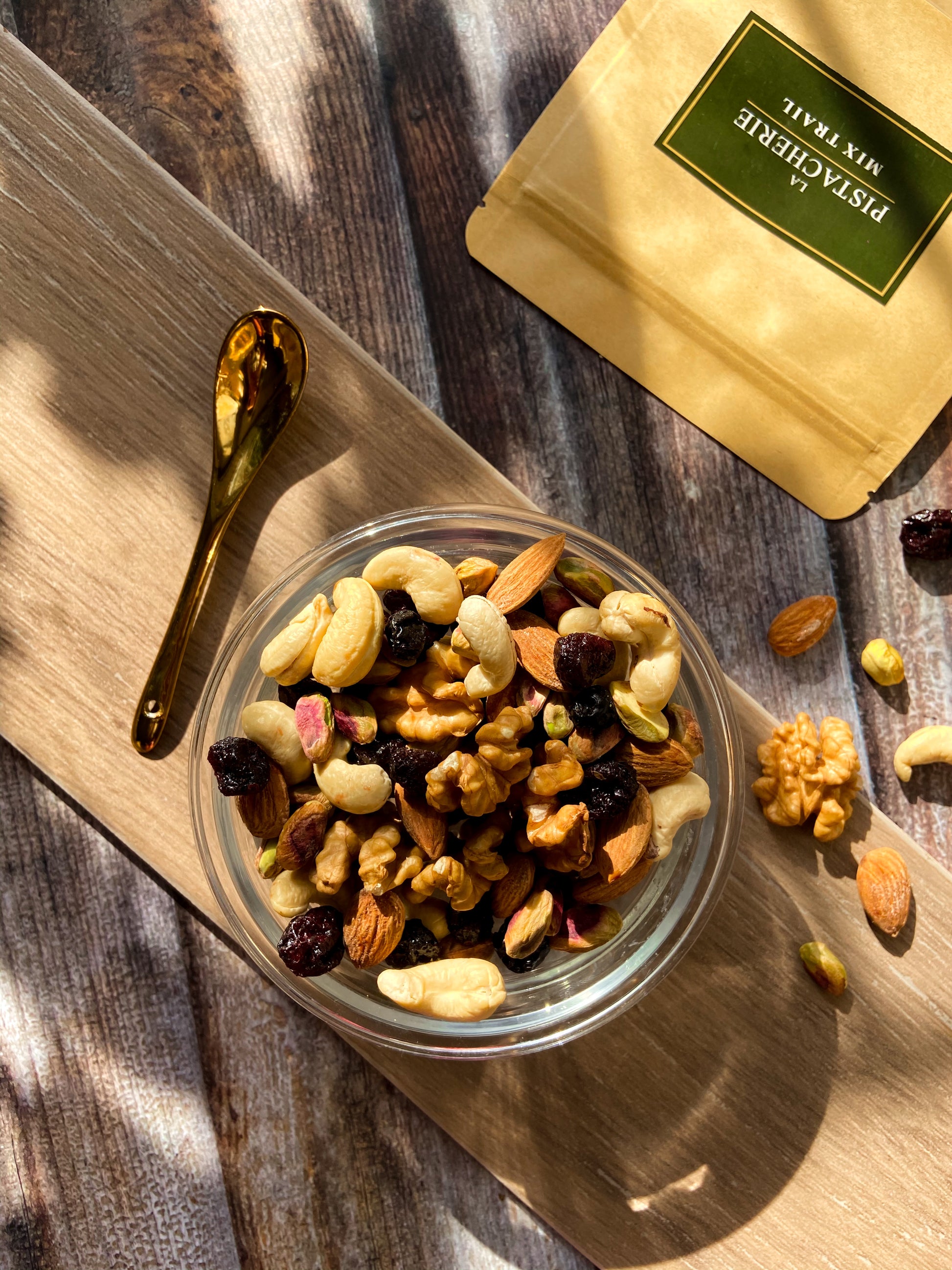 A scrumptious blend of finely roasted almonds and cashews, mixed with walnuts, cranberries, blueberries, pistachios and dried dates which will take your taste buds on a palatable food trail like never before.